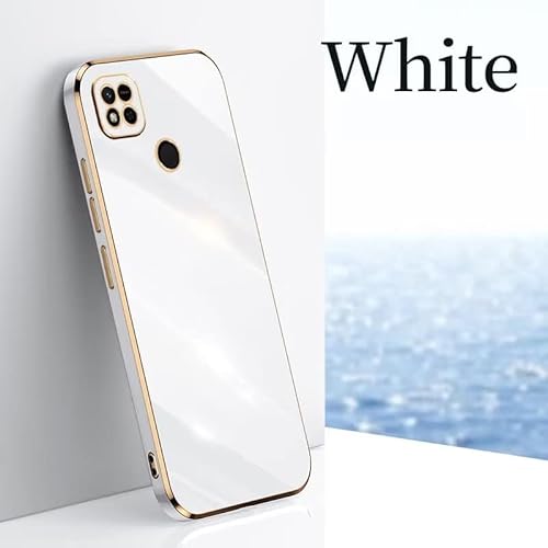NEINEI Cover per Xiaomi Redmi 10A/9C,Custodia Design Semplice Ultra Sottile Placcatura TPU,Colori Luminosi Specchio Silicone Antiurto Custodie Case Cover,Bianca