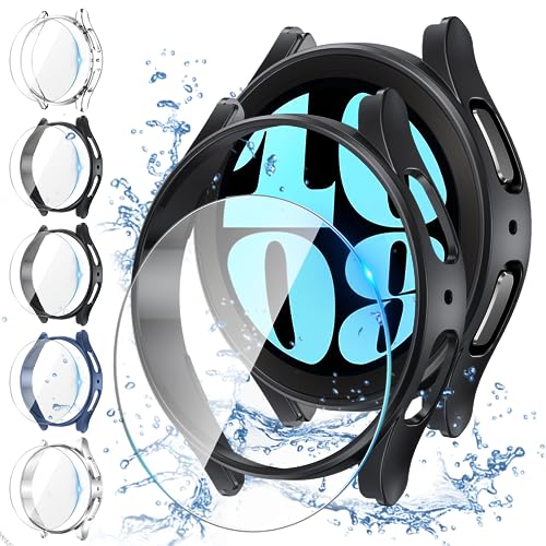 Neitra [5+5Pezzi] Custodia + Pellicola Protettiva per Samsung Galaxy Watch 6 2023 44mm, 5 Protettiva in Vetro Temperato + 5 Cover Rigida per PC Bumper Custodie Antigraffio per Galaxy Watch6