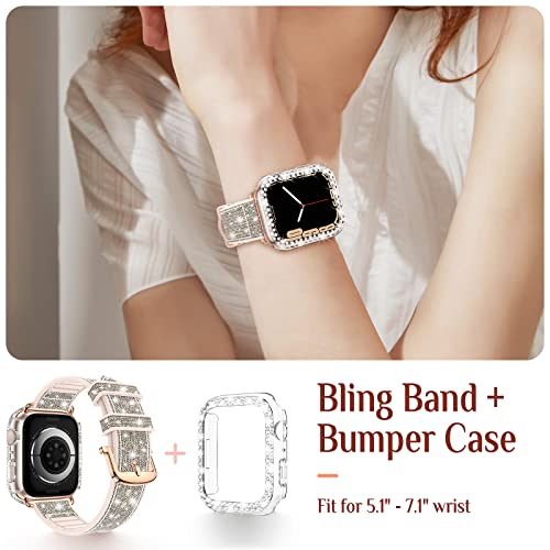 ✅ 【Bling Diamond Case】 Set con custodia per paraurti con strass glitterati, protegge il bordo dell'orologio Apple, conferendo al tuo iWatch un aspetto di lusso con diamante e molti complimenti. (NESSUN proteggi schermo. Protegge principalmente i bordi dell'orologio da graffi e graffi.)