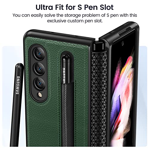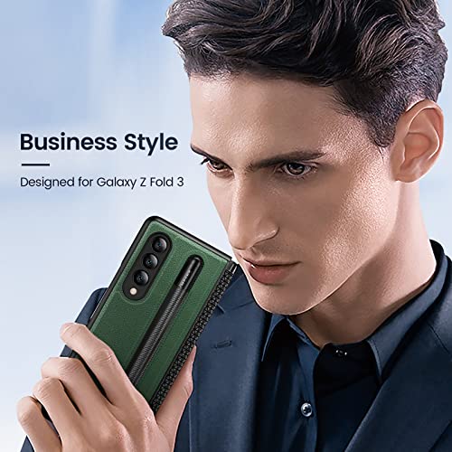 Neitra Custodia per Samsung Galaxy Z Fold 3 con Slot per Penna [Non Include S Pen], Custodia Protettiva in Pelle per Tutto il Corpo con S Pen Slot Cerniera Protezione per Galaxy Z Fold 3 5G (Verde)