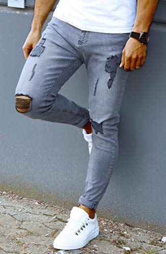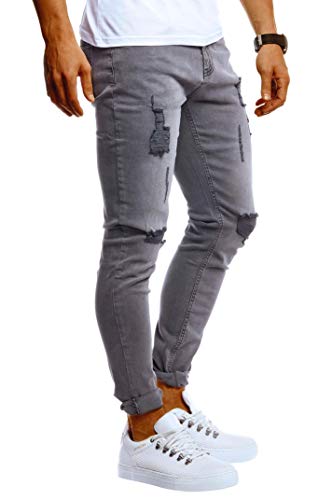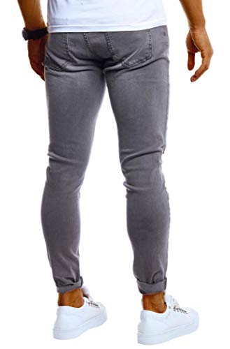Leif Nelson Basic LN9150 - Jeans da uomo slim fit, in denim, blu-grigio, lunghi, stile alla moda, adatti per ragazzi, elasticizzati, con sdruciture bianche, modello cargo, chino, per l'estate e l'inverno, grigio., 34W x 30L