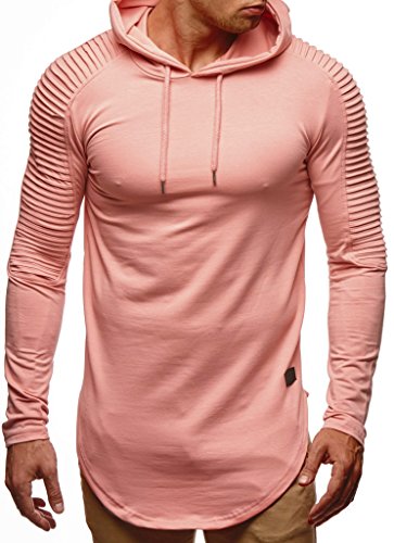 Leif Nelson Felpa con Cappuccio Uomo Maglione LN-6369 Salmone Rosa Medium