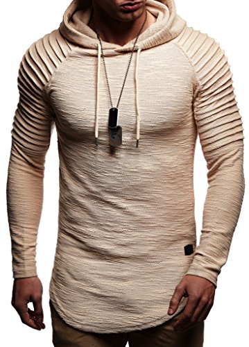Leif Nelson Felpa con Cappuccio Uomo Maglione LN-8128 Beige XX-Large