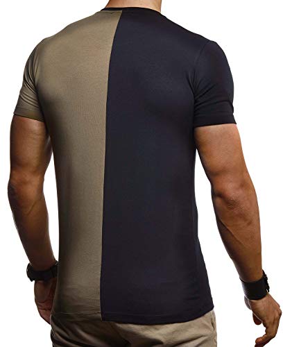 Leif Nelson LN4670 - Maglietta estiva da uomo, scollo rotondo, slim fit, in cotone, con teschio, a maniche corte, lunghezza, Nero/Kaki, L