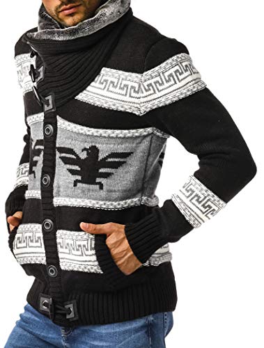 Leif Nelson LN5872 - Cardigan da uomo, giacca nera per l'inverno, con collo sciallato, adatta per le mezze stagioni, slim fit, nero/grigio, M