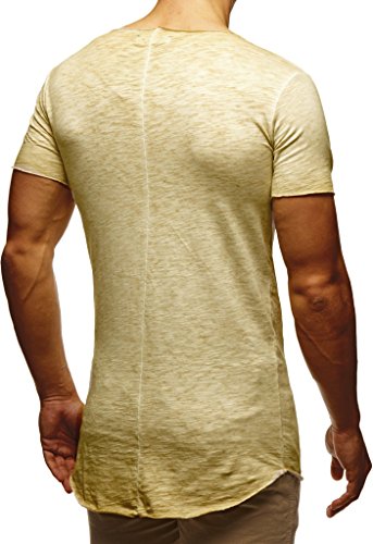Leif Nelson LN6353 T-Shirt da uomo, semplice, con girocollo e manica corta, slim fit, Beige lavato, S