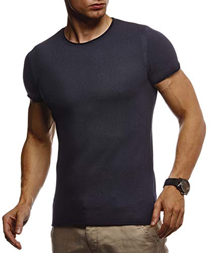 Leif Nelson LN7320 - Maglietta estiva da uomo con scollo rotondo, slim fit, in maglia fine, colore bianco e nero, maglietta basic da uomo, scollo rotondo, a maniche corte, Blu, XL