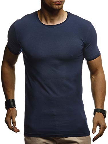 Leif Nelson LN8314 - Maglietta estiva a maniche corte da uomo, girocollo, slim fit, in cotone, colore bianco e nero, Blu, M
