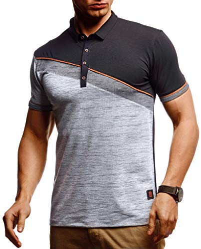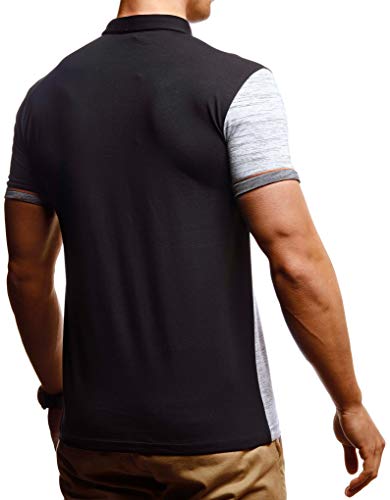 Leif Nelson Maglietta da uomo estiva con colletto a polo slim fit in maglia fine bianco nero basic uomo maglietta a maniche corte top LN55165 nero, grigio, melange XXL