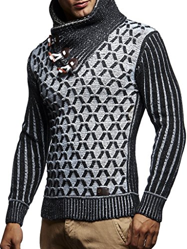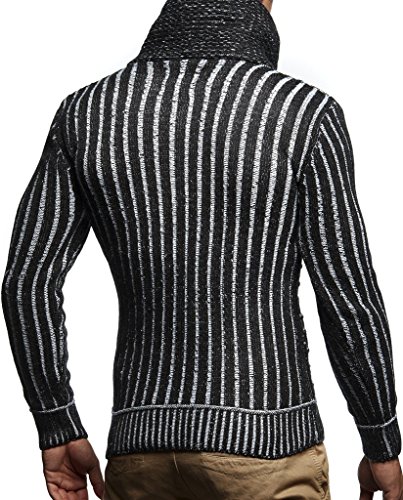 Leif Nelson Maglione Uomo Felpa a Maglia Collo a Scialle LN-5385 Black-Ecru XX-Large
