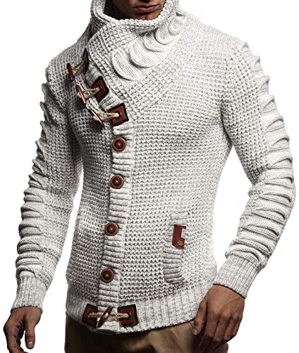 Leif Nelson Maglione Uomo Felpa a Maglia Collo a Scialle LN-5585 Grigio X-Large