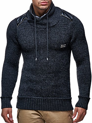 Leif Nelson Pullover da uomo con cappuccio, slim fit, felpa con cappuccio, maglia a maniche lunghe, modello LN7040 Nero L