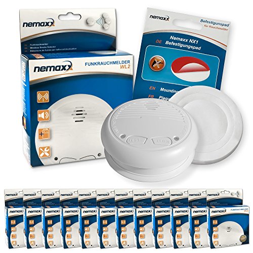12X Nemaxx Wl2 Rivelatore di Fumo Senza Fili + 10X Nemaxx Nx1 Quickfix Pad di Fissaggio