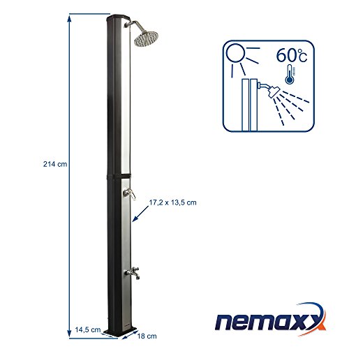 Nemaxx SD35FX Doccia Solare per Giardino Piscina Camping Doccia Esterna Doccia con Serbatoio di 35 L resitente ai Raggi UV - con lavapiedi e soffione Regolabile