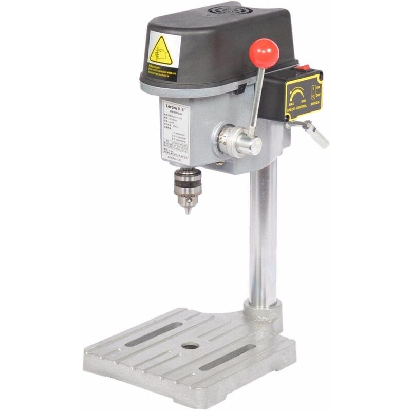 Descrizione Questo robusto trapano a colonna è uno strumento indispensabile nelle officine e nelle officine per la foratura generale. Sarete in grado di forare rapidamente materiali che vanno dal legno all'acciaio. La profondità di foratura può essere regolata per consentire una foratura più precisa rispetto alla foratura manuale. Dati tecnici Peso: 5Kg Potenza: 340W Velocità a vuoto: 1: 0-8000 giri/min, 2: 0-11 000 giri/min, 3: 0-16000 giri/min. Profondità di foratura: 25mm Mandrino: 1-10mm Dimensioni: 17x17x39cm