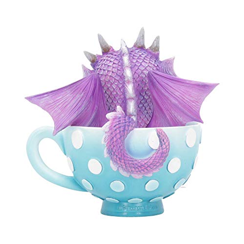 Seduto in una tazza da tè blu cielo a pois, questo piccolo drago ti aspetta per portarli a casa