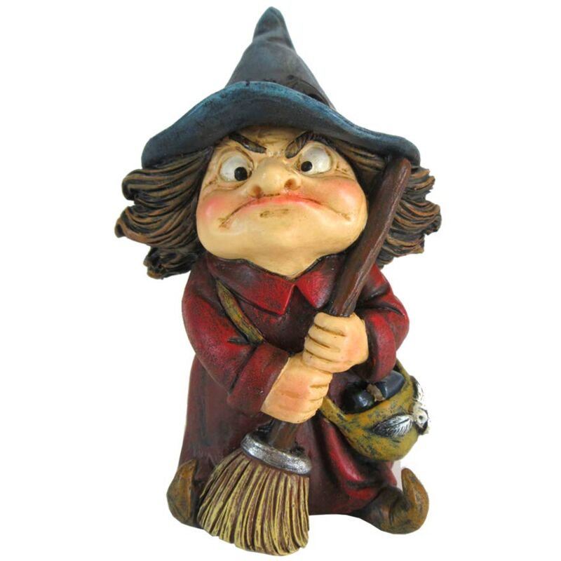 Toil: Questa piccola strega è davvero cattiva. Stando in piedi e stringendo saldamente la scopa, guarda avanti crescendo di disgusto. La strega indossa un lungo trench rosso e un cappello blu da streghe, appoggiato sul fianco è una cartella, senza dubbio piena di materiali incantesimi. Colata nella migliore resina prima di essere dipinta a mano, questa statuetta antiestetica è perfetta in qualsiasi collezione di streghe.