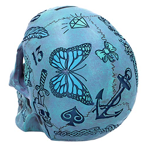 Nemesis Now Aqua Blue Traditional, Tattoo Fund Skull Teschio per Tatuaggi tribali, Colore: Blu Acqua, Resina, Taglia Unica