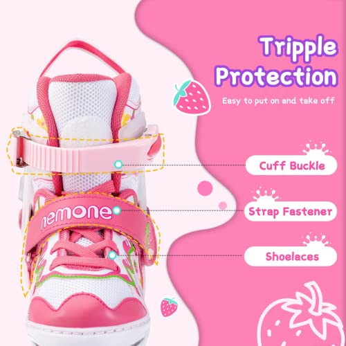 NEMONE Coniglio Fragola Pattini in Linea Bambina Regolabili 8 Ruote Illumina LED Pattini in Linea per Bambino Bambini Regalo M(32-35 EU)