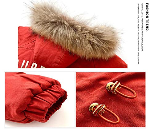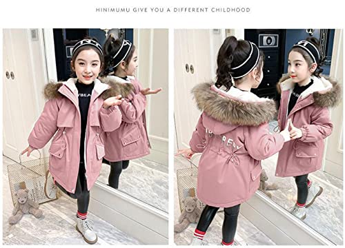 Nemopter - Cappotto lungo da bambina, parka, spesso, con cappuccio in pelliccia, caldo e invernale, Rosa, 4-5 Anni