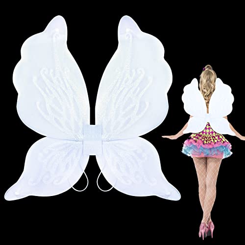 Nenjindz Ali Fata Adulto Adolescente Costume Halloween, 1 Pezzi Ali Farfalla Donna Ali da Angelo Bianco Accessori Carnevale per Natale Feste(51*49cm)