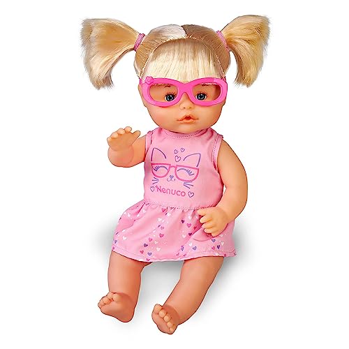 Nenuco - Occhiali, con occhiali rosa, capelli biondi raccolti in due codini, inclusi 2 cerotti colorati, per bambine e bambini dai 2 anni, Famosa (NFN20000)