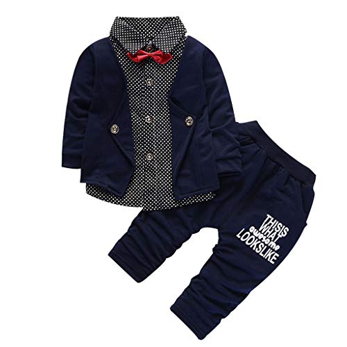 2pcs Neonata Manica Lunga Completini Cartoon Topi Lettera Stampa T-Shirt Cime + Floreale Ricamo Denim Pantaloni Bambina Vestiti (Marina Militare #1, 2-3 Anni)