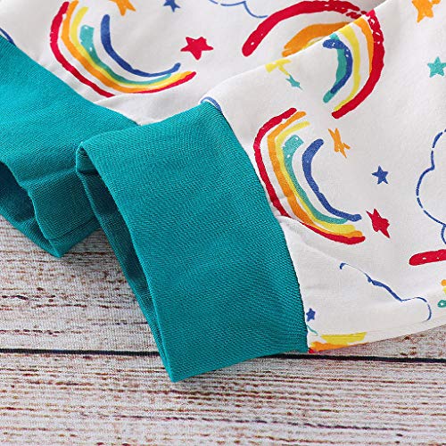 Neonata Ragazze Completini Manica Lunga Pagliaccetto Lettera Tuta Body Cime + Arcobaleno Pantaloni Cappello Bambina Set (Bianco #2, 12-18 Mesi)