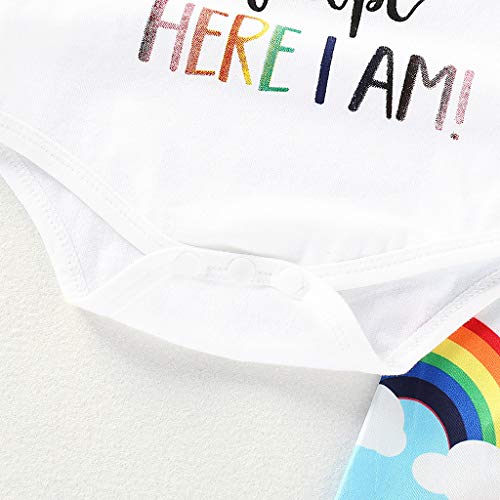 Neonata Ragazze Completini Manica Lunga Pagliaccetto Lettera Tuta Body Cime + Arcobaleno Pantaloni Cappello Bambina Set (Bianco #1, 6-12 Mesi)