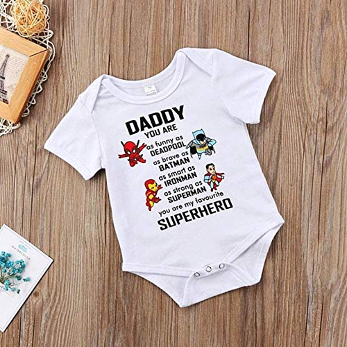 Body Neonati Bimbi Divertenti - Mezza Manica - Cotone -Daddy - Papa Sei Il Mio Eroe Preferito - 6-9 Mesi - cm 80 - Abbigliamento Bambino Prima Infanzia