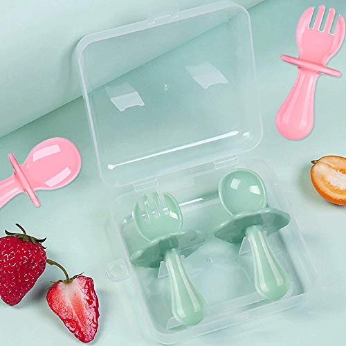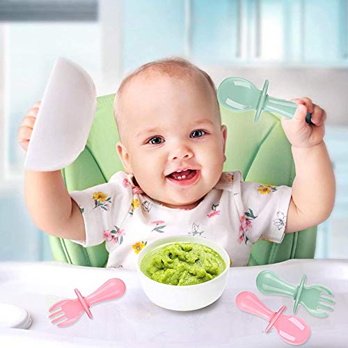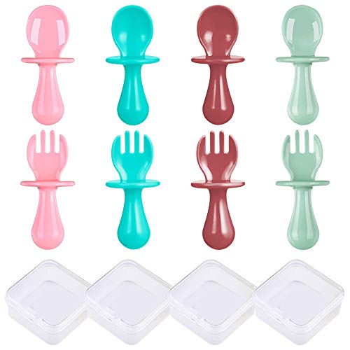 XYDZ 8PCS Neonati Cucchiaio Forchetta Silicone Facile Impugnatura Flessibile Resistente al Calore Multicolore Posate per Incoraggiare il Bambino a Mangiare in mModo Indipendente Senza BPA