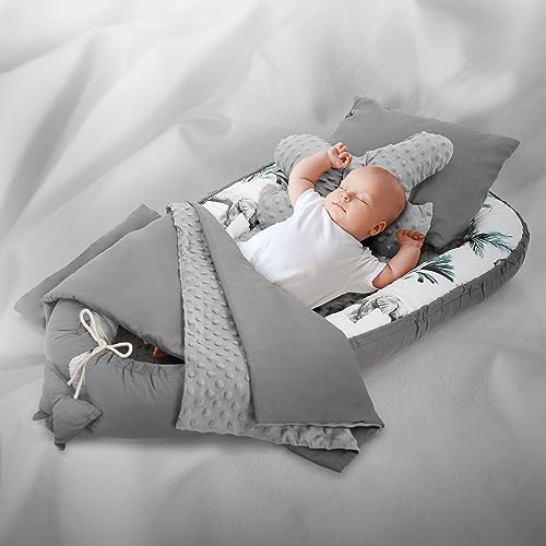 Joyz Set Nido per Neonati 5 Pezzi Grigio Safari 90x50 cm in Cotone con Coperta Cuscino e Rivestimento Rimovibile Nido Multifunzionale per Bambini Nido di Coccole da Viaggio Riduttore Bozzolo Lettino