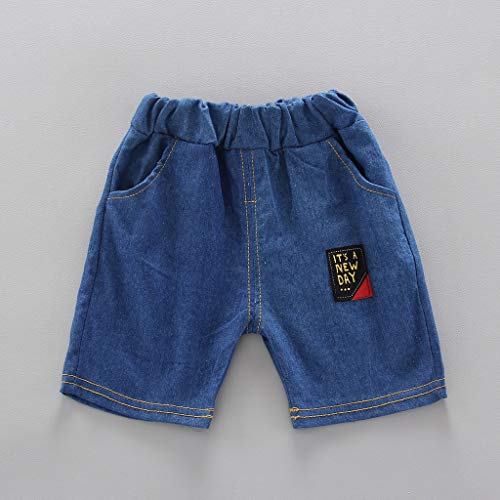 Neonato Bambino Elegante Camicia Stampa di Stelle Manica Corta Cime + Denim Pantaloncini Abiti Set - 12 24 Mesi T-Shirt Ragazzo Maschio Estivi Casuale Completini Sportivi Abbigliamento 0-3 Anni