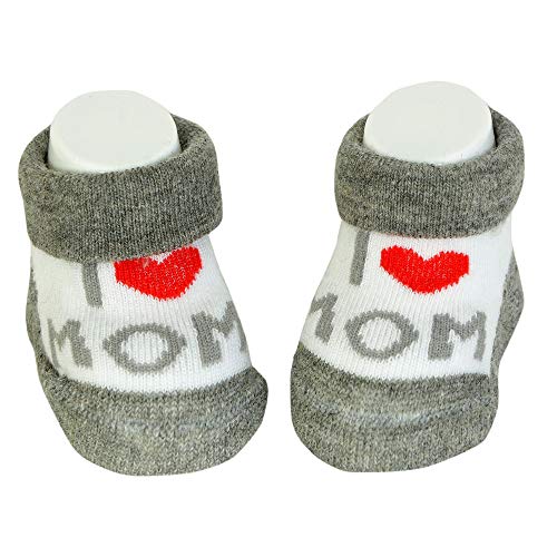Dafi soft Neonato Bambino Socks 0-4 Mesi | Spesse Impugnature In Cotone E Antiscivolo | Set Regalo Per Neonato Nuovo Perfetto Per Baby Showers | (Grigio - I love you Mom & Mom)