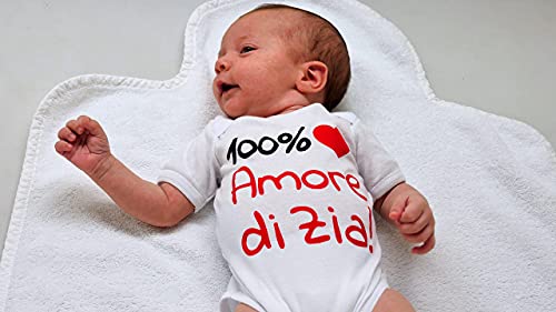 Body neonato manica lunga caldo cotone bianco divertenti frase 100% amore di Zia cuore rosso - idea regalo nascita nipote (body Zia w ml cc 12-18 mesi)