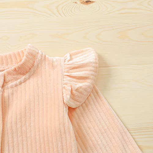 Neonato Toddler Baby Girl Boy Pagliaccetto Body Manica Lunga Button-Down Tuta con Cappuccio Pantaloni Striscianti Tuta Intera Fiocco Fascia Unisex Abbigliamento Casual Abiti (Albicocca, 18-24 Mesi)