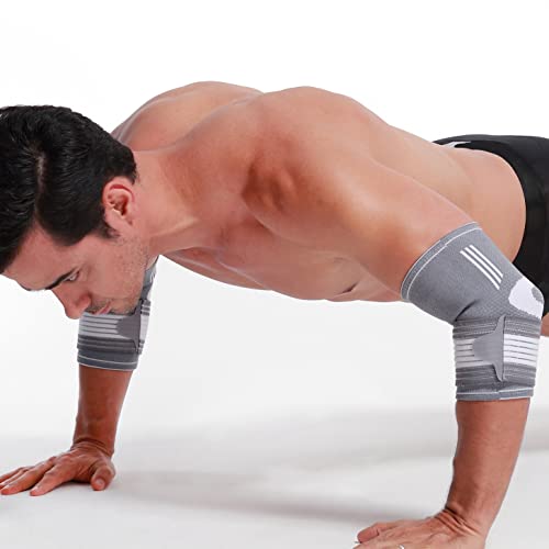 NEOtech Care - Tutore per gomito a fascia - Tessuto elastico e traspirante - compressione regolabile con fascia - uomo, donna, ragazzo - braccio destro o sinistro (S, 1 Paio)