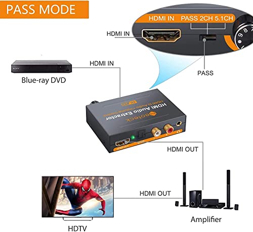【HDMI Audio Extractor con Tre Canali di Uscita Audio】3 Canali Audio:SPDIF, 2RCA e 3.5mm Jack Audio. Design Compatto Consente di HD Sorgente Collegare a Display Singolo HD, e L/R + 3.5mm, e SPDIF Uscita Audio.
