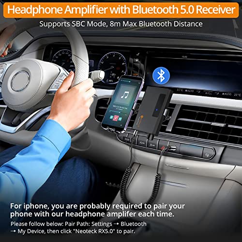 Neoteck HIFI Amplificatore per Cuffie con Ricevitore Bluetooth 5.0 Portatile 3.5mm Audio Auricolare Amplificatore Ideale per MP3 MP4 Phone Digitale Players Computer