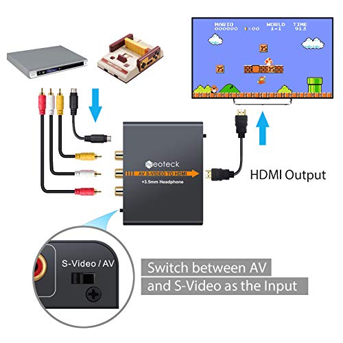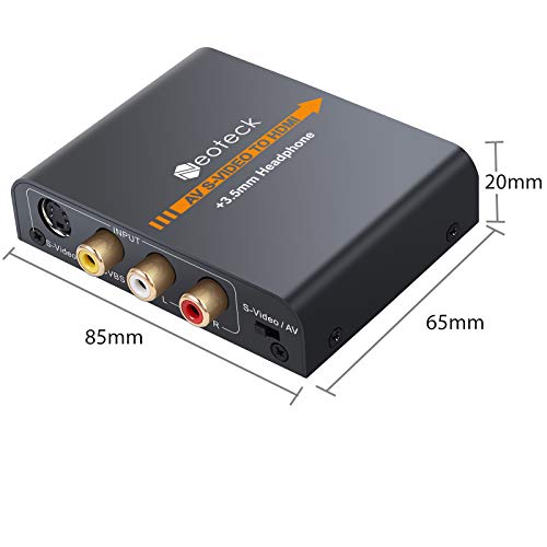 Neoteck AV a HDMI Audio Convertitore 1080P 3RCA AV CVBS Composito S-Video a HDMI Adattatore Upscaler 720P/1080P con 3.5mm Jack Audio per NES SNES N64 Sega Genesis PS2 PS3 VHS VCR Player PC Monitor