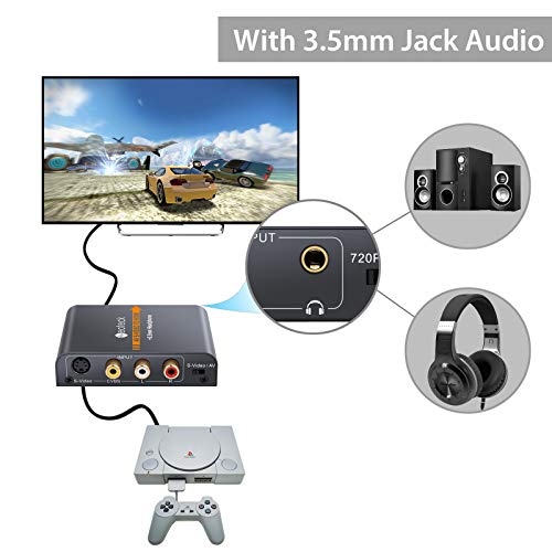 【Convertitore AV S-Video a HDMI】Leggero e Portatile. Converte il Segnale Video Composito o il Segnale S-Video a Segnale Video HDMI Digitale e il Segnale Audio Stereo da Jack 3,5 mm, Che Consente l'Integrazione di Dispositivi Analogici Più Vecchi nel Sistema Home Theater HD.