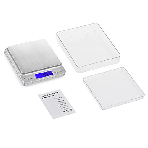 Neoteck Mini Bilancia Digitale Tascabile 0.01-500g Scala Postale/Bilancino Pesa Oro Gioielli Moneta/Bilancia per Cibo da Cucina - Colore Argento