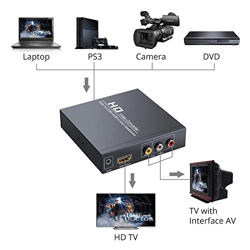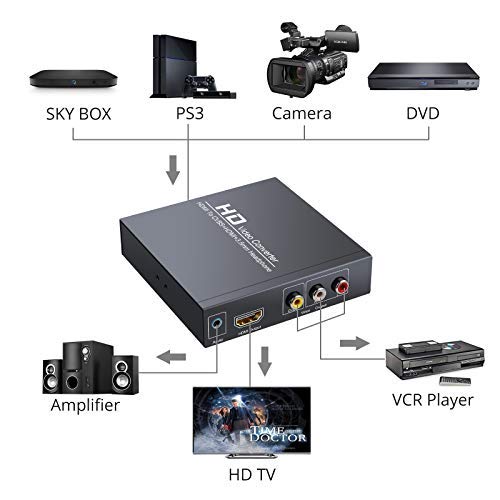 Neoteck HDMI a RCA HDMI a HDMI Convertitore 1080P HDMI a HDMI + AV 3RCA CVBS Audio Video Composito Adattatore con Jack da 3.5 mm e Adattatore d'Alimentazione Supporta 1080P PAL NTSC per HD TV
