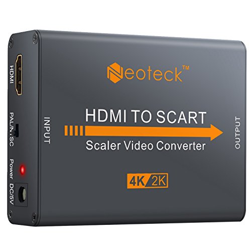 Neoteck Convertitore da 4K a HDMI in alluminio SCART con alimentatore per TV, DVD, SKY, HD Blu Ray, DVD, Apple e PS3 4K 2160P