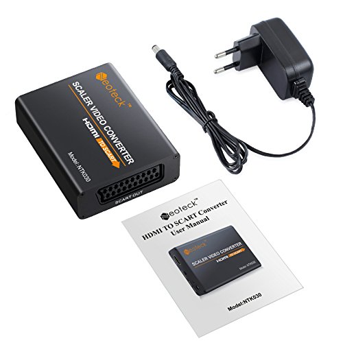 Neoteck Convertitore HDMI a SCART con Alimentatore EU / Adattatore Audio Stereo HD Video Composito HDMI Entrata SCART Uscita per SKY HD Blu Ray DVD APPLE TV PS3