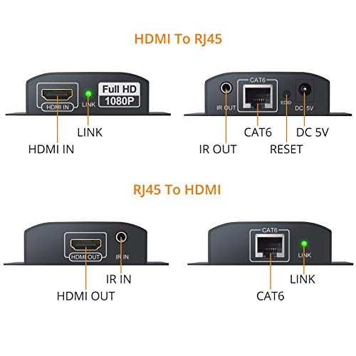 60M HDMI Extender: TCP / IP su una singola / Cat 7 segnale 60M cavo AV RJ45 / Cat6 senza allungare in perdita di trasmissione, CAT6 Si prega di cavi standard che utilizzano più di 15 metri di lunghezza (i migliori sono da 20 - 30 m)