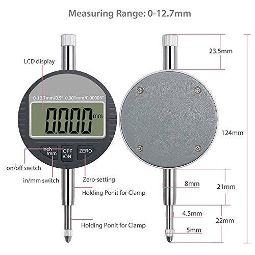 Neoteck DTL LED Micrometro Digitale 0.001mm/0.00005'' Indicatore Digitale Calibro di Precisione 0-12.7mm/0.5'' Comparatore Elettronico Pollice/Digitale Indicatore della Sonda