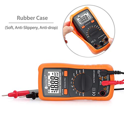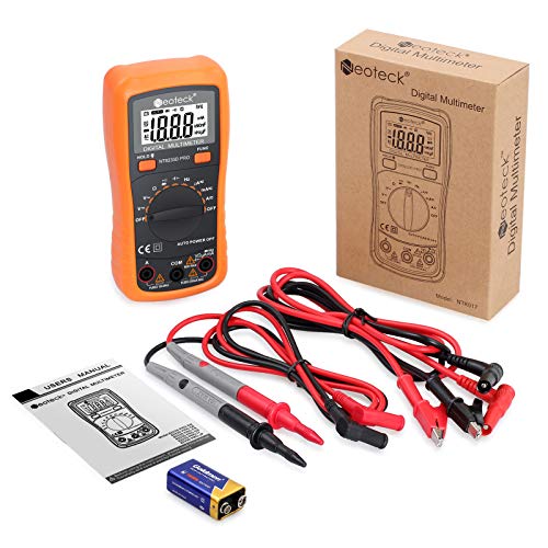 Neoteck PRO MS8233D Multimetro Digitale Auto Range Auto Spegnimento per AC/DC Tensione DC Corrente Resistenza Capacità Frequenza Diodo Transistor Continuità con LCD Retroilluminazione-Arancione