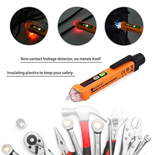 Neoteck Tester di voltaggio, penna rilevatrice di tensione senza Contatto, 12 - 1000 V A, con torcia e segnale acustico, a clip, colore: Arancione