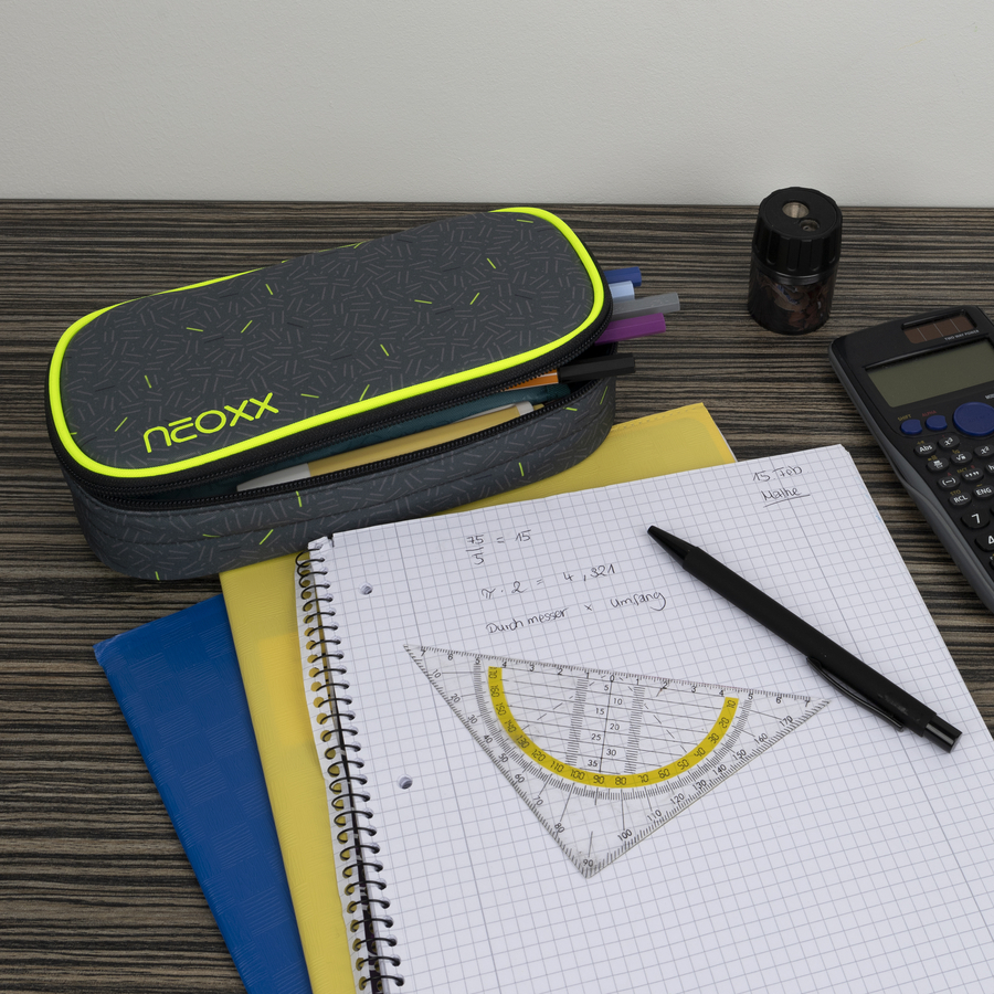 Dettagli del prodotto: Età: da 6 anni L'astuccio Jump di neoxx è ideale per gli alunni e le menti creative che tengono all'organizzazione e alla conservazione pratica delle penne e dei materiali, oltre che all'ambiente. L'astuccio è dotato di una tasca speciale per il quaderno e di una linguetta con 10 passanti per le matite. Un orario può essere inserito in una piccola finestra di visualizzazione. Inoltre, l'astuccio neoxx è dotato di un piccolo scomparto con zip in cui è possibile riporre in modo sicuro gli oggetti più piccoli, come gomme o temperamatite. Sostenibile: l'intero rivestimento interno dell'astuccio è realizzato con bottiglie di PET riciclate al 100%. Per l'astuccio sono state riciclate circa 2 bottiglie di PET Inoltre, neoxx aiuta i rospi marini child a schiudersi in un ambiente sicuro, in collaborazione con la Turtle Foundation. Questo rende l'astuccio un must-have per ogni cartella scolastica. Dimensioni e peso: Dimensioni assemblate (lunghezza x larghezza x altezza): 10,5 x 22,5 x 5,5 cm Peso: 0,15 kg Materiale e cura: Materiale: Poliestere, fodera in bottiglie di PET riciclate al 100%.